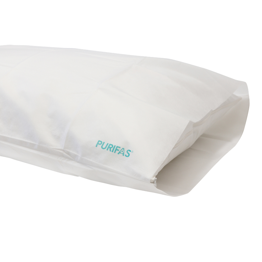 Introducing the recyclable Purifas PillowGuard — a medical-grade protector that’s simple to swap out and recycle between clients.